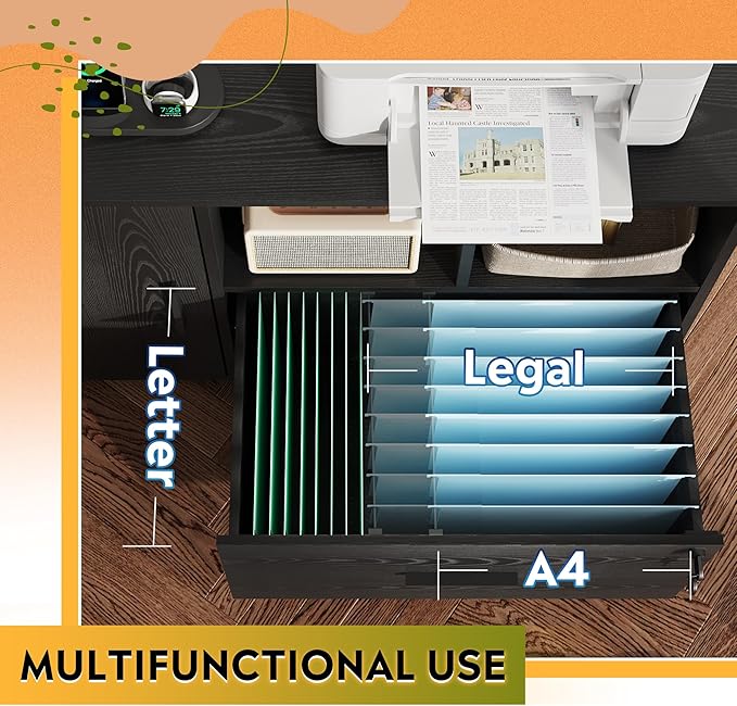 - File Drawer with Lock: The full-extension file drawer accommodates Legal/letter/A4 sized documents and features smooth ball-bearing slides that allow you easy access to all files. This locking file cabinet comes with 2 keys to secure important documents and protect the privacy of your business.