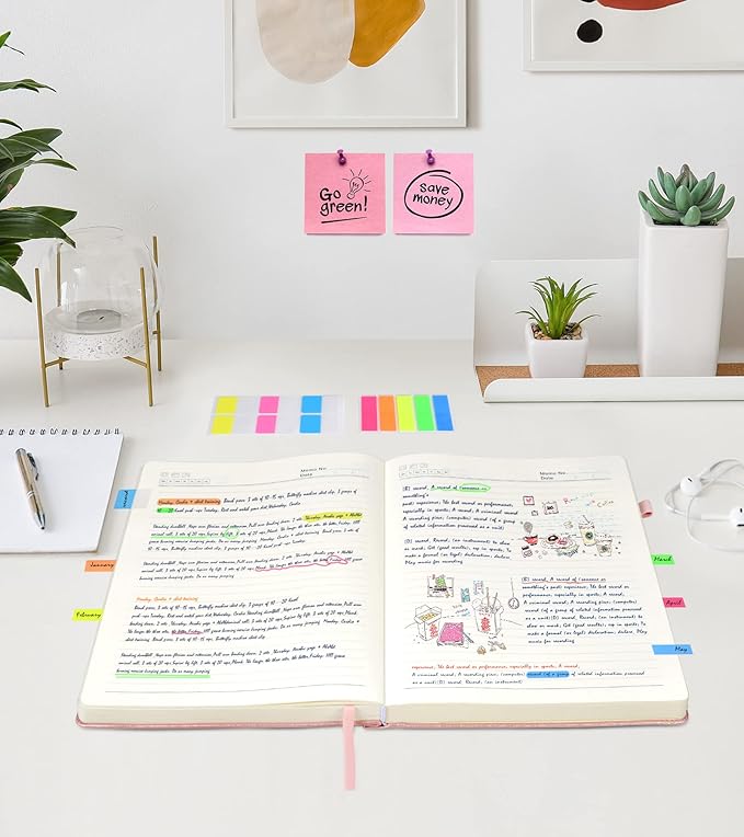 - 【180°Lay Flat Journal Notebook】The 180° lay flat design makes writing easier, reading more convenient, and taking notes more efficient.At the same time, the hardcover notebook is designed with1 elastic closure band & 1 elastic bookmark band. to make it tightly closed to protect your content, and the inner paper will not be curled and kept flat.