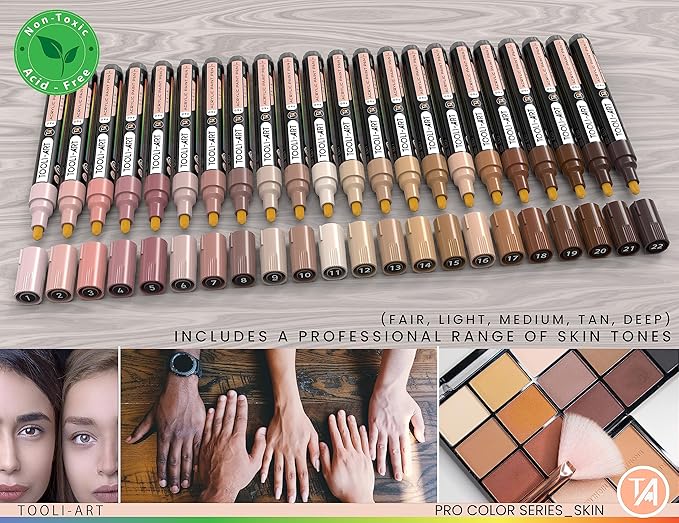 TOOLI-ART 22 Acrylic Paint Markers Paint Pens Pro Color Series Set 3mm Medium Tip for Rock Painting, Glass, Mugs, Wood, Metal, Glass Paint, Canvas, DIY. Non Toxic, Waterbased, Quick Drying (SKIN)