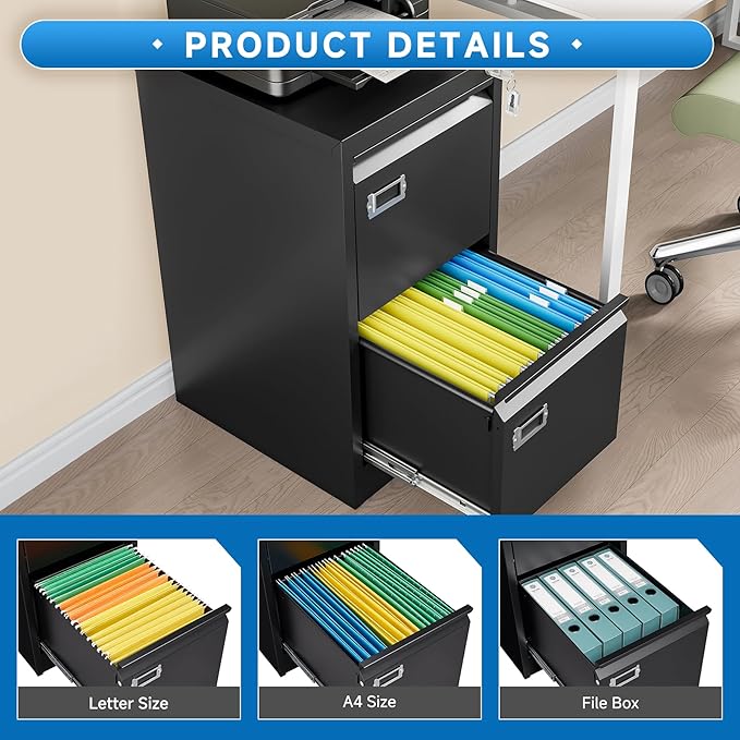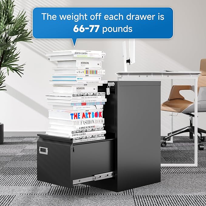 - 【HIGH SECURITY】This file cabinet can lock 2 drawers at the same time with one lock, and is equipped with 2 keys. With an anti-tilting mechanism, when 1drawer is opened, the interlocking system prevents the other drawer from opening, thereby preventing tipping and protecting your safety.
