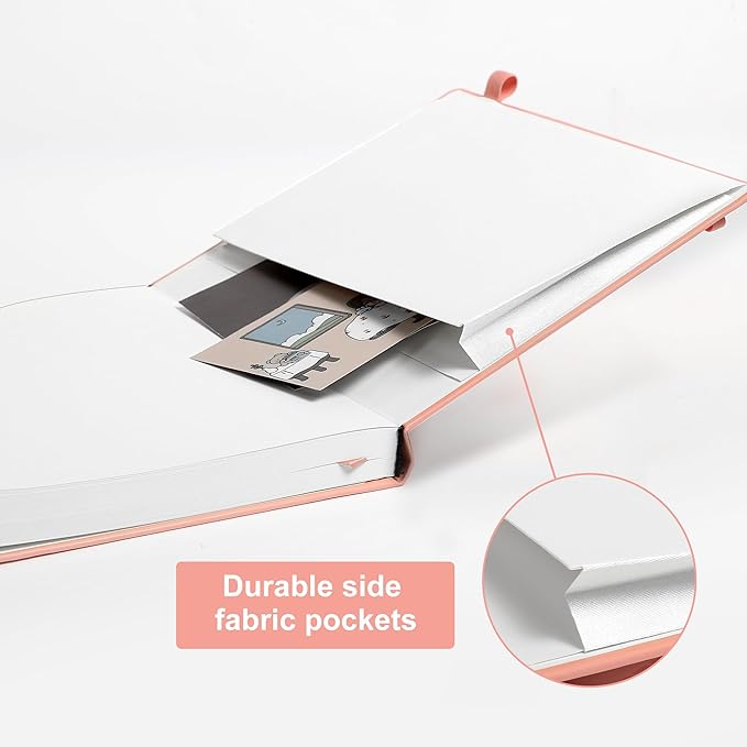 - Notebook with Pockets - Pink journal for women comes with a paper pocket and gold trimmed fabric to make the pockets more durable. Hardcover Notebook has colorful ribbons and elastic bands and a pen insert on the right side of the journal.