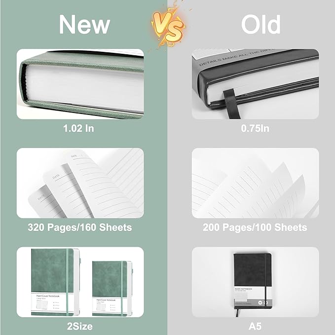 - 320 Pages Paper - Journaling notebooks with 320 pages provides you with enough writing space. A5 notebook journal with 100gsm paper, thicker than normal paper, will not cause bleeding, ghosting or smudging and is suitable for most types of pens.