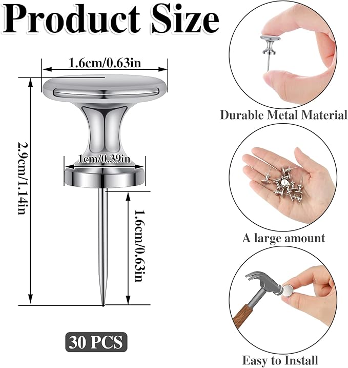 - 【Package Includes】You will receive 30 large silver push pins with a reusable plastic box, convenient to store your pushpins without taking up much space, you can take them with you wherever you go