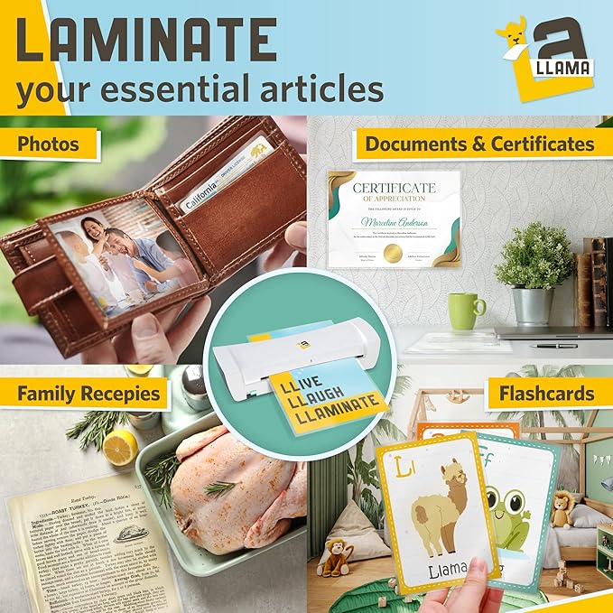 - 🦙 LAMINATE WITH ANY THERMAL LAMINATOR: matte lamination sheets 5 mil are designed to work seamlessly with any laminating machine; thermal laminating sheets ensure hassle-free operation when laminating paper, documents, certificates, photos, bookmarks, menus, business cards, photos, stickers, labels with LA LLAMA laminating film