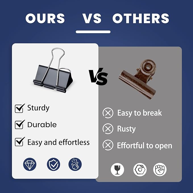 - WHAT YOU GET: Package included 72 clips ( 2 inches × 12pcs × 6 boxes ). Our large binder clips are perfect for everyday use. Order now and experience the convenience and reliability of our black clips.