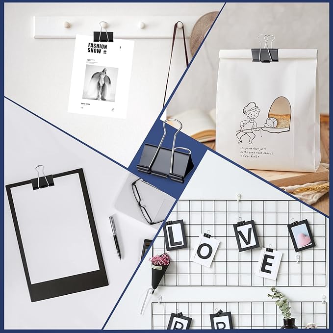- MULTI-FUNCTION: Binder clips can be a useful and versatile tool in offices and kitchens. They can help you keep your papers organized and as chip clips to seal food bags, They are good office supplies and storage tools.