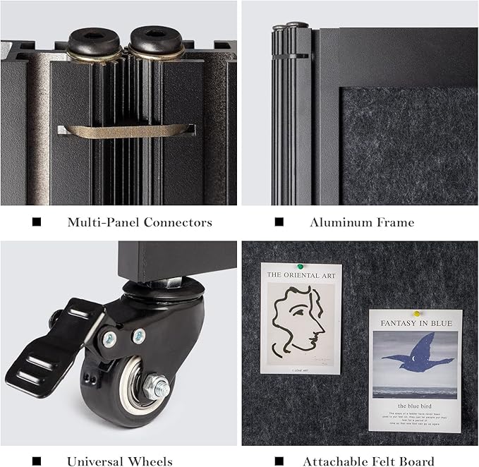 - Portability: Our partition screen is equipped with high-quality universal wheels, you can easily move the partition wall to anywhere. It is also equipped with a brake function, so it can stand firmly where you need it