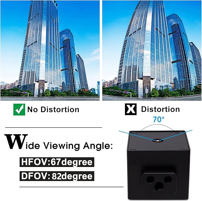 - Wide angle no distortion lens, HFOV about 70 degree, DFOV about 82 degree.