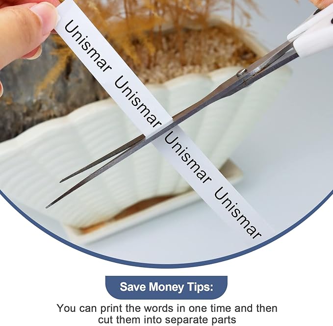 - You could print all the text you need together on one long label tape, then cut them into individual labels. You can use the tze tz tape 12mm 0.47 laminated white label your cabinets, storage boxes, files, kitchen items