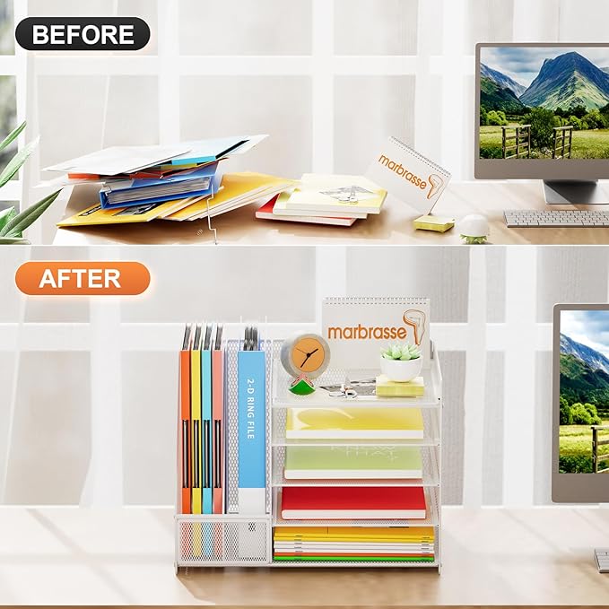 - 【Best Choice】Marbrasse exclusive design of the all-in-one desktop file organizer be certain to bring our customers more convenience in the office and be popular in our daily life. If you have any questions, please feel free to contact us and we'll help to solve it in 24 hours. You take NO RISK by ordering today.