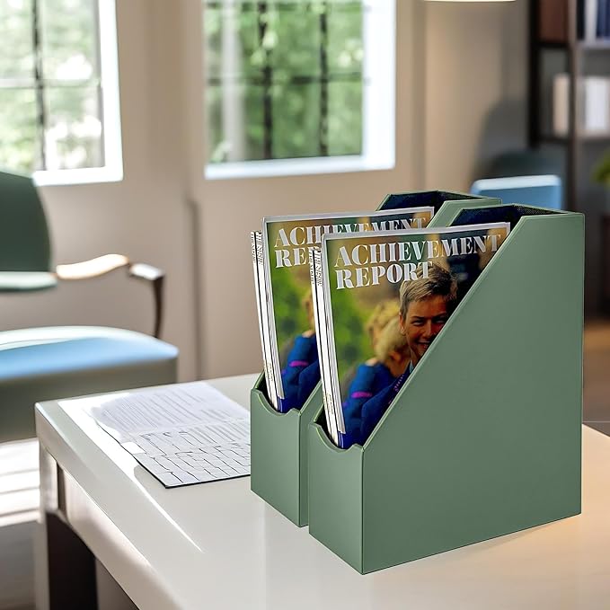 - 📁 Versatile use: Our magazine file holder can be used in various settings like offices, libraries, and homes, home-offices, to store and display magazines, catalogs, pamphlets, notebooks, mails and other documents, to keep files sorted and easily accessible