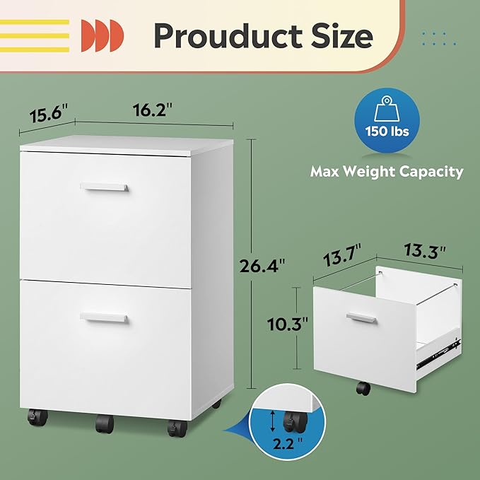 - 【Reinvent Your Workspace】This contemporary file cabinet is the perfect addition to your home office, fitting next to or under desk for extra storage and doubling as a printer stand.