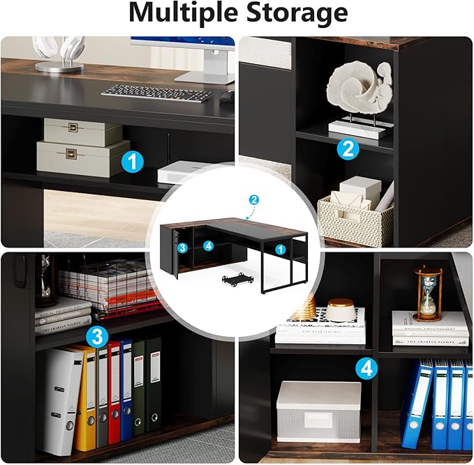 - EASY ASSEMBLE: Coming with quite clear instructions, numbered parts and all necessary tools, the large office desk with storage could be easily assembled. We provide friendly customer service and we will give you a satisfactory answer if you have any questions.
