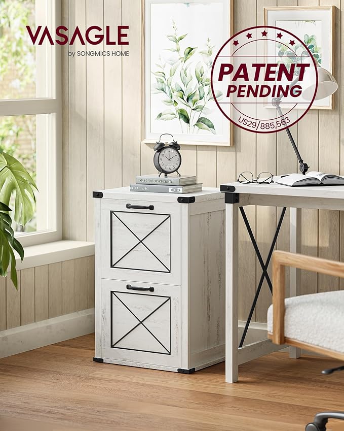 VASAGLE File Cabinet, Filing Cabinet with 2 File Drawers, Printer Stand, Fit A4, Letter Size, Hanging File Folders, Modern Farmhouse Style, for Home Office, Rustic White UOFC048T73