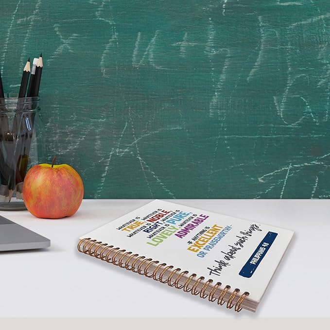 VNWEK Bible Scripture Philippians 4:8 Whatever is True Spiral Notebook Journal 5.5 x 8.3 inches,Christian Lined Hardcover Spiral Notebook,Inspirational Christian Gifts for Women Men Faith Teens