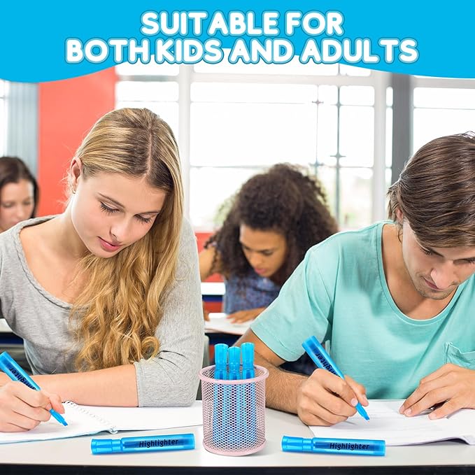 - Convenient Chisel Tip Design: our blue highlighters come with a good chisel tip offering broad highlighting or fine underlining and allow you for creating thick and thin lines; Secure fitting caps can protect the tips when not in use