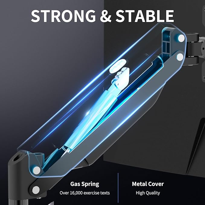 Suptek Single Monitor Mount,Adjustable Gas Spring Monitor Arm Desk Mount Stand Fits 17 20 22 23 24 26 27 32 33 inch,Holds up to 22 lbs, Black(MD18)