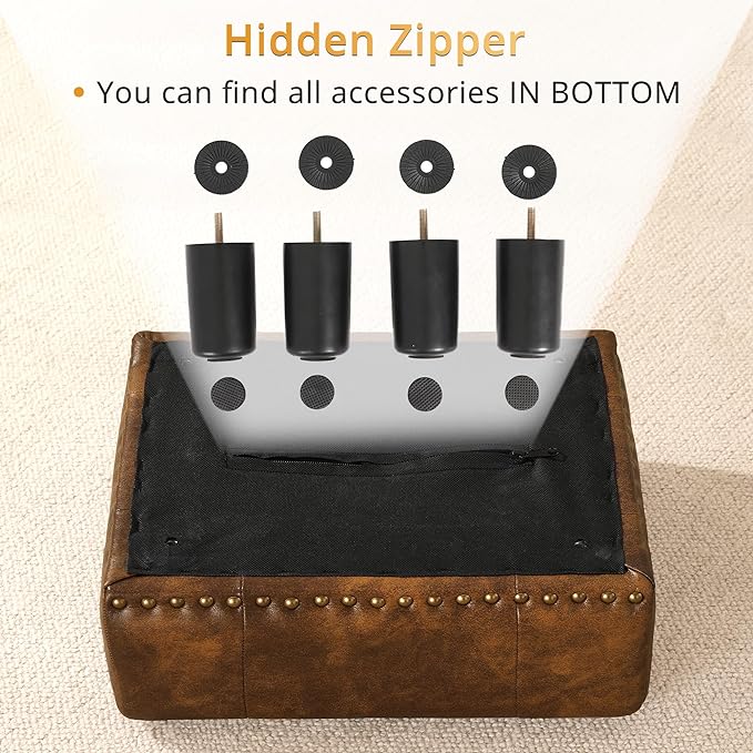 - Anti-Slip: To prevent slip and scratch in daily use, our footrest ottoman provides extra felt pads, you can take out pads from the hidden zipper area and attach them to the bottom of legs