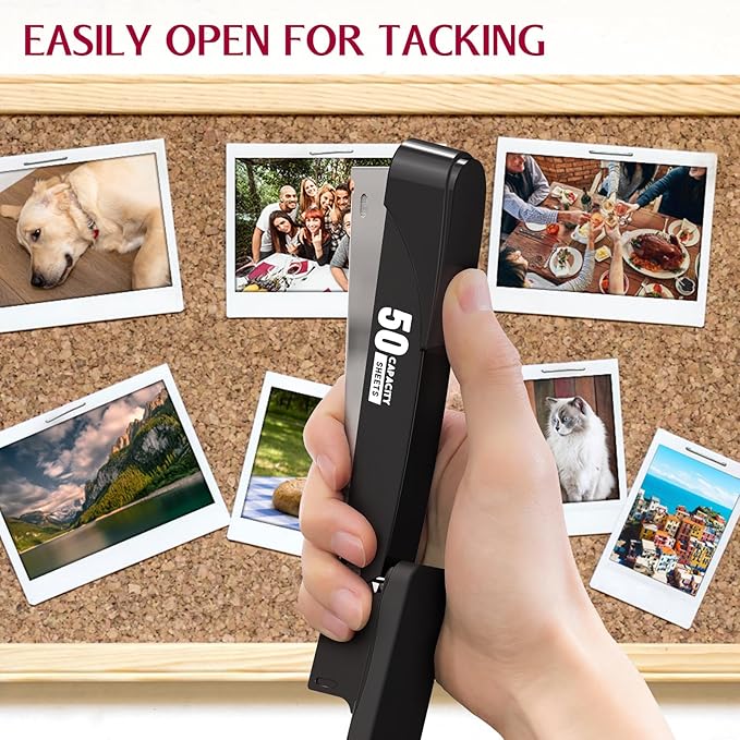 - 【Pinning & Tacking】: You can reverse the anvil for temparary pinning and open the stapler for tacking papers to bulletin boards.