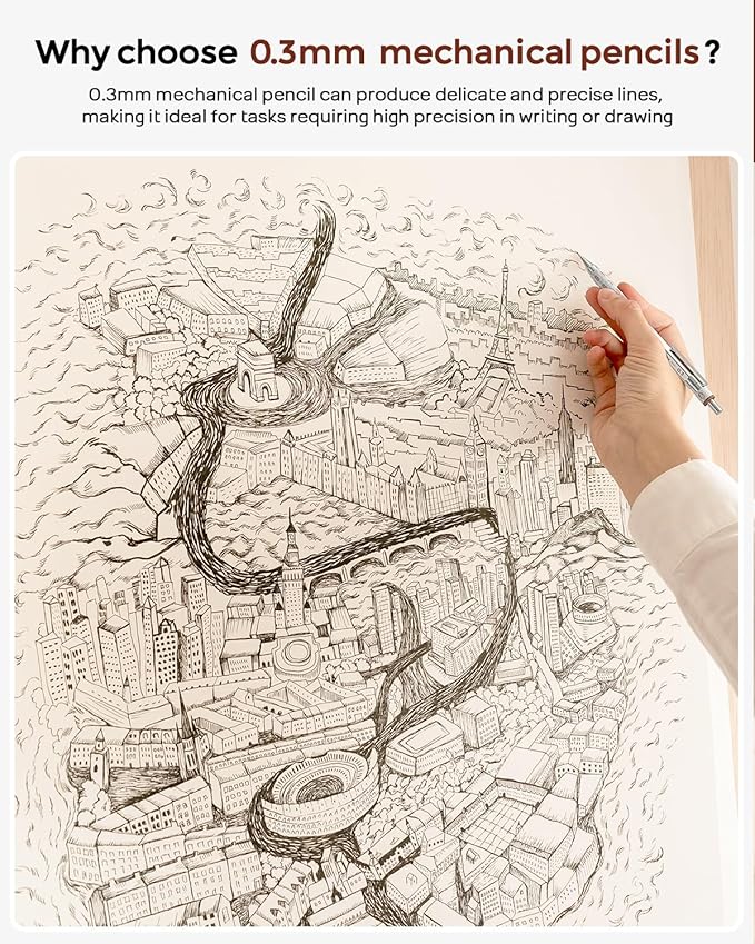 - 0.3mm HB Lead: Extra durable lead is stronger than standard lead, produce thin clear line & marks,works with mechanical pencil with no need to sharpen.Easily correct mistakes with a replaceable eraser or 4B eraser. Perfect supplies for writing,drafting, drawing & template work