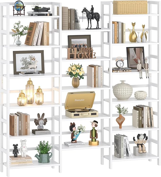- Extra Large Storage Space: If you are a collectibles lover or a bookworm, don’t miss this affordable and practical bookshelf. Featuring 17 open shelves, this 6-tier triple wide bookcase provides ample storage space for books, decorations, collectibles, potted plants, photo frames, and more. The open design enables you to fetch items with ease. Each layer can hold up to 44 lbs, for a total weight capacity of 748 lbs. Bookshelf measures 61.42" W x 9.84" D x 71.38" H.