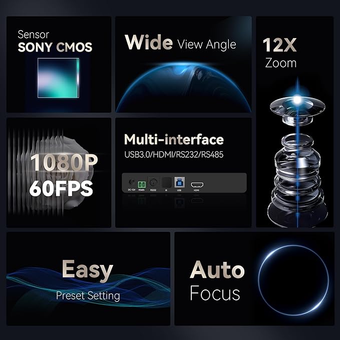 - 🌟【𝟏𝟎𝟖𝟎𝐏 𝟔𝟎𝐅𝐏𝐒 𝐂𝐨𝐧𝐟𝐞𝐫𝐞𝐧𝐜𝐞 𝐂𝐚𝐦𝐞𝐫𝐚】Capture every detail and provide an immersive experience with Tenveo FHD 1080P 60FPS PTZ Conference Room Camera. With its 12X Optical Zoom, 1/2.8'' SONY CMOS Sensor, 2.38 megapixel Lens and 90° FOV, you can now capture stunningly detailed visuals that bring your virtual meetings or events to life. The wide-angle lens ensures that no participant is left out of the frame, while the 12X optical zoom allows for close-ups of key speakers and presenters.