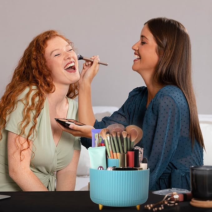 SKYDUE Makeup Organizer, Rotating Pencil Pen Holder for Desk, Dual-Purpose Desktop Organizer for Cosmetics & Pens, Makeup Brush Holder with 5 Slots, Pencil Cup for Office, Home