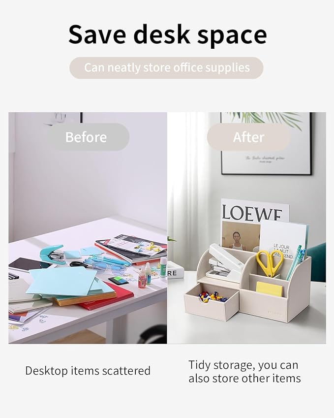 - 6 in 1 Desk Organizer - Office organizer with 6 compartments help you organize different kinds of desktop accessories and supplies for office, home and school. Reduce desktop confusion and free up space.
