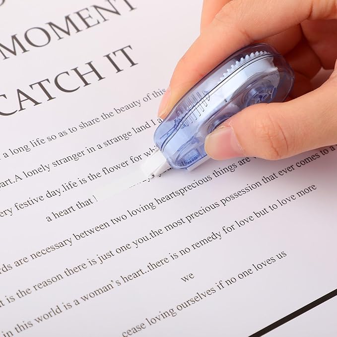 - No Drying Time: correction tapes easily cover your handwriting, ballpoint, ink, gel, marker and so on, allowing you to make instant corrections without drying time, giving you a pleasant use experience; Keep your writing clean without damaging your books or paper