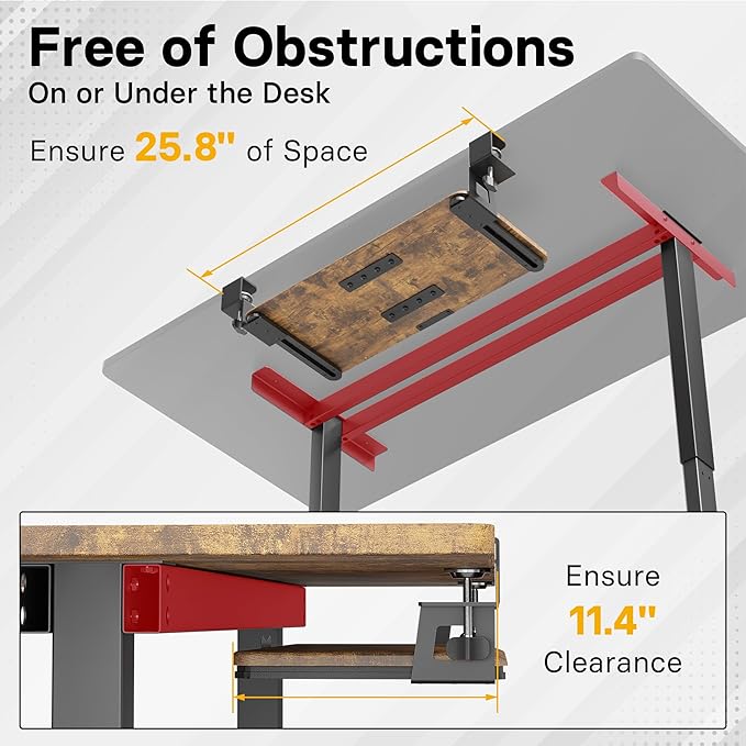 - ✅ MEASURE YOUR DESK BEFORE ORDERING – The tray requires at least 25.8" of width and 11.4" of depth underneath your desk to slide in and out smoothly. Confirm these dimensions to avoid fitment issues