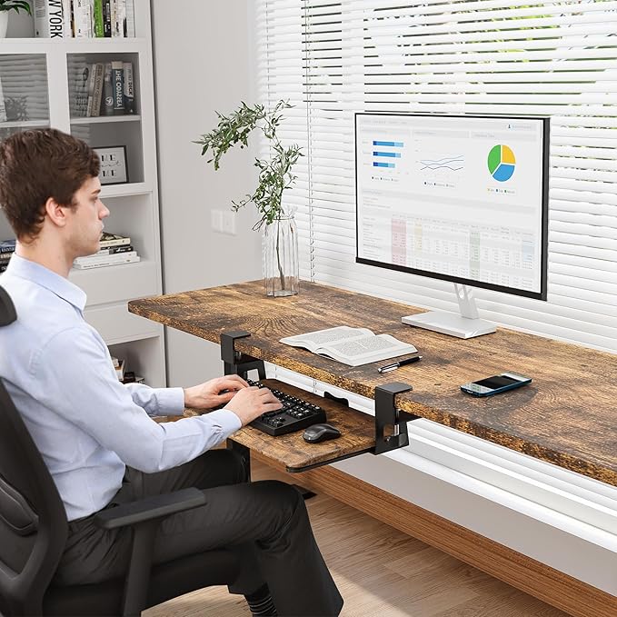 - ✅ MAXIMIZE YOUR DESK SPACE – Free up your desktop by placing your keyboard and mouse on this smooth slide-out tray. The ergonomic position helps reduce wrist strain while keeping your workspace tidy—perfect for offices, remote workstations, and gaming setups