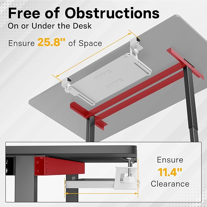 - ✅ MEASURE YOUR DESK BEFORE ORDERING – The tray requires at least 25.8" of width and 11.4" of depth underneath your desk to slide in and out smoothly. Confirm these dimensions to avoid fitment issues