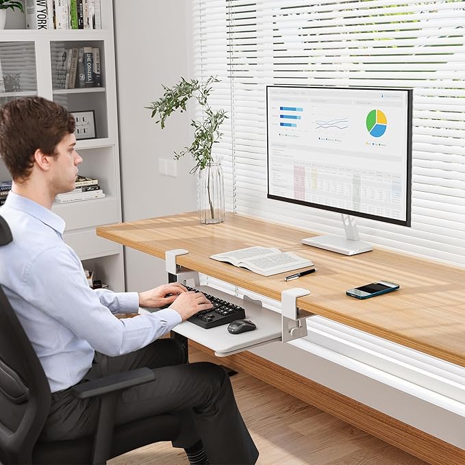- ✅ MAXIMIZE YOUR DESK SPACE – Free up your desktop by placing your keyboard and mouse on this smooth slide-out tray. The ergonomic position helps reduce wrist strain while keeping your workspace tidy—perfect for offices, remote workstations, and gaming setups