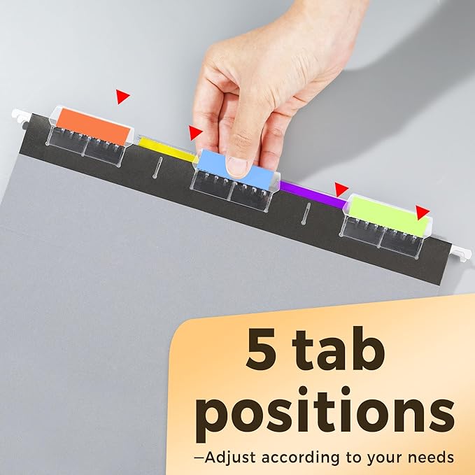 - With 1/5-cut Tabs: Include 25 pack 1/5-cut adjustable tabs and two sheets of blank label inserts. You can customize your file names on blank label to help you mark and categorize your documents efficiently.