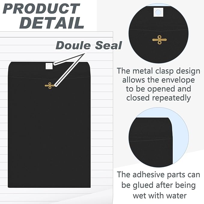 - Practical Sealing Mechanism: the metal clasps together with moisture activated gluing provide a secure grip and make the envelope easy to open and close repeatedly without damaging the content inside; The sealing mechanism ensures your documents stay safe and protected during handling