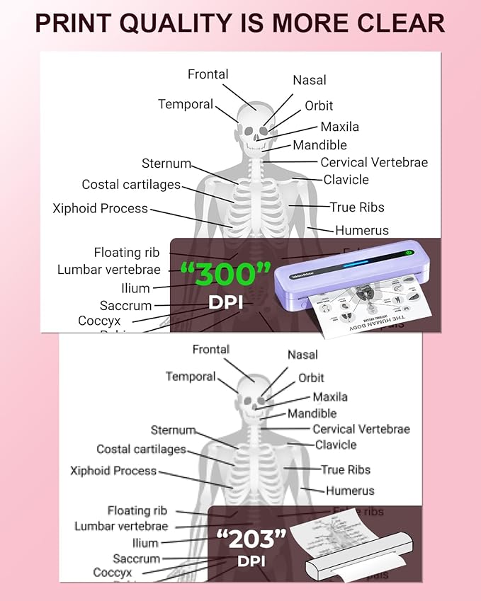 - CRISP PRINTS & USER-FRIENDLY: Our wireless thermal printer is 300DPI, beating most of the mini thermal printers on the market is 203DPI. Prints are sharper and clearer! And Installing and using mini portable printer just in 1 minute.