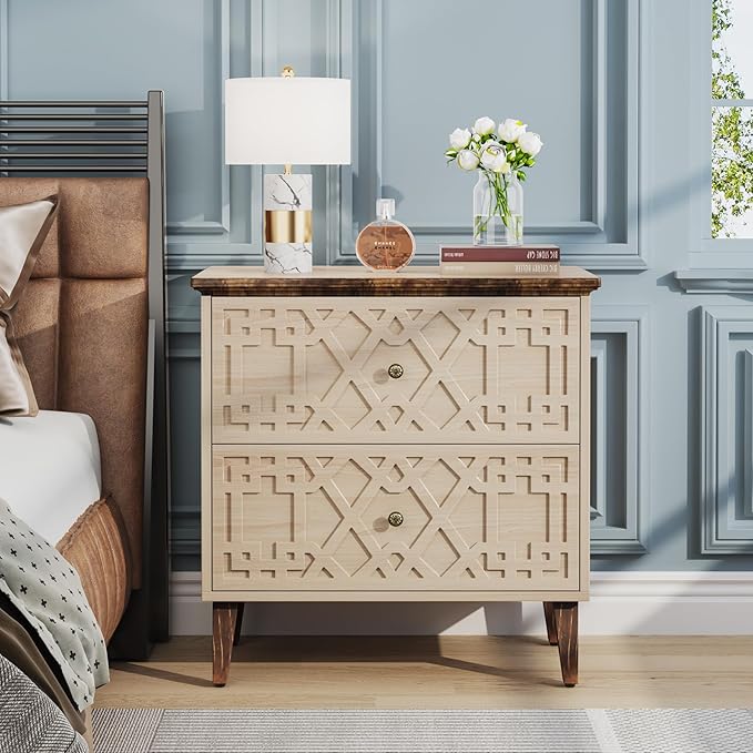 - FUNCTIONAL & STYLISH: The drawer door stands out with its exclusive and sophisticated patterns, infusing a contemporary touch and modern flair to the overall design. This 2-drawer file cabinet seamlessly adapts to any home decor, be it a retro, farmhouse, or modern style.