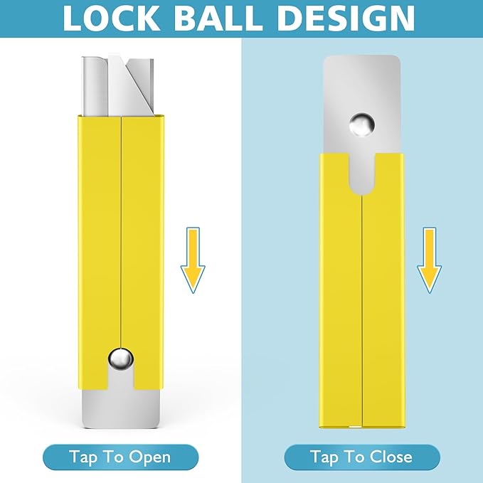 DIYSELF Box Cutter, 12-Pack Box Cutters Retractable for Packages, Boxes, All Metal Tough Sheath, Basic Cutter, Small Utility Knife for Home, Warehouse (Yellow)
