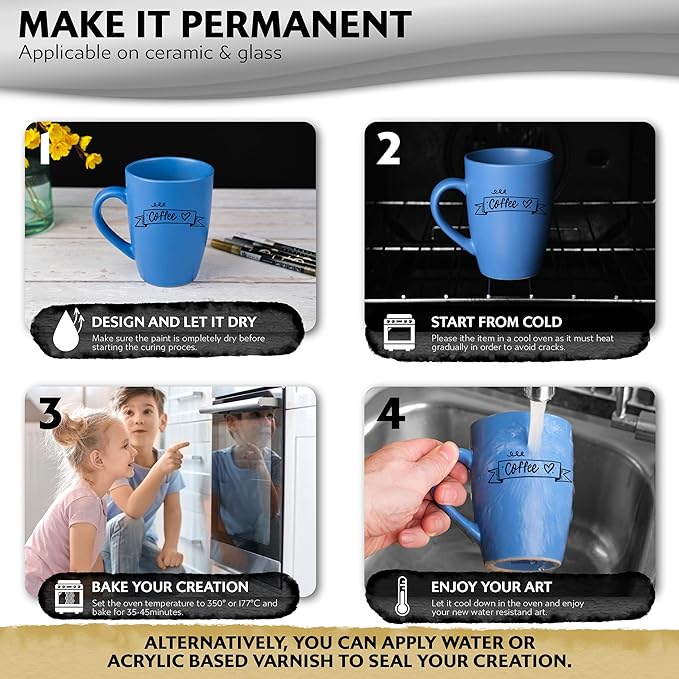 - VERSATILITY – 8 x Black marker mettalic pen suitable to work on wood, fabric, glass, ceramic, stones and other surfaces