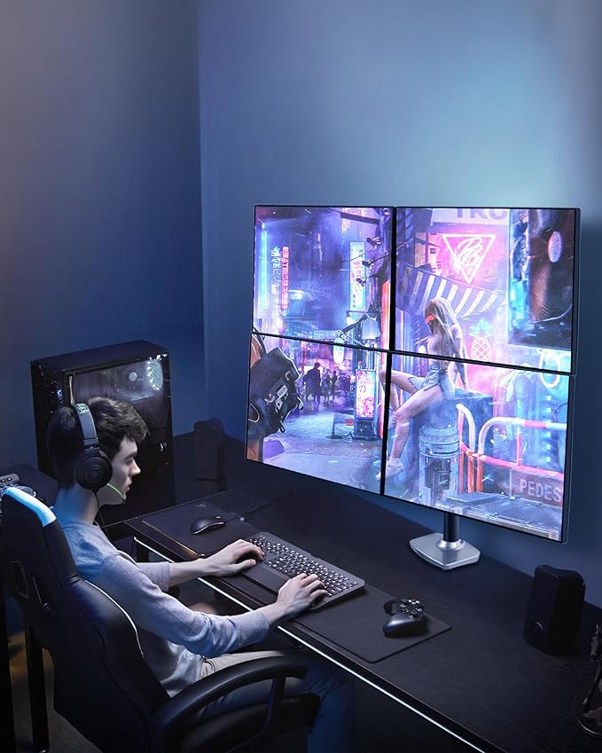 - 【Maximize Desktop Space】 Since the long monitor arm offers swivel, tilt, and rotate adjustment, this quad monitor stand can be retracted to the edge of the desk. Coupled with hidden cable management, a neat and functional workspace is always refreshing.