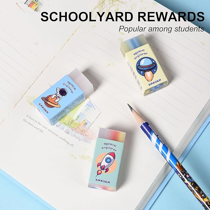- Explore the cosmos with our 18-piece cute outer space themed erasers – perfect for kids!