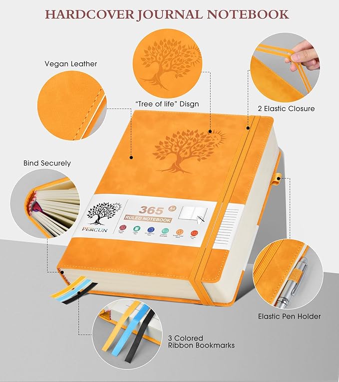 - 【365 Pages Premium Thick Lined Paper】: Our PERCUN lined journal notebook is made of 365 pages high-quality 100Gsm thick ruled pager with an acid-free light Ivory paper that is thicker than normal. This premium quality paper will not cause bleeding, ghosting or smudging and is suitable for most types of pens,provides ample space for journaling, note-taking, and creative writing. The line spacing is 7mm, making it easy to write legibly and neatly.