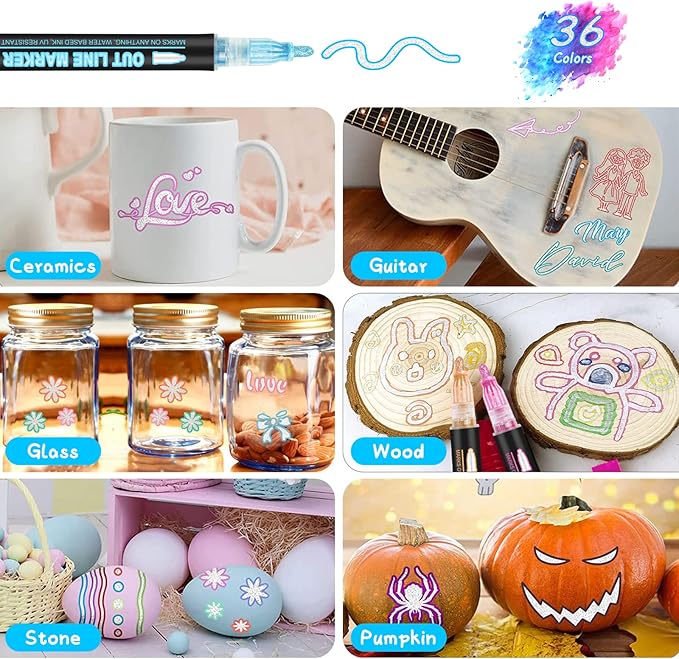 - Ideal gift: This double line outline pens is an ideal gift for adults and kids, and your sweetheart will give you a big hug when receive it . This super squiggles outline markers is Children’s Day, Easter Day, Birthday Party, Christmas, Halloween, Valentine's Day, Mother's Day, Thanksgiving Day, New Year and Back to School's most suitable painting and gifts.