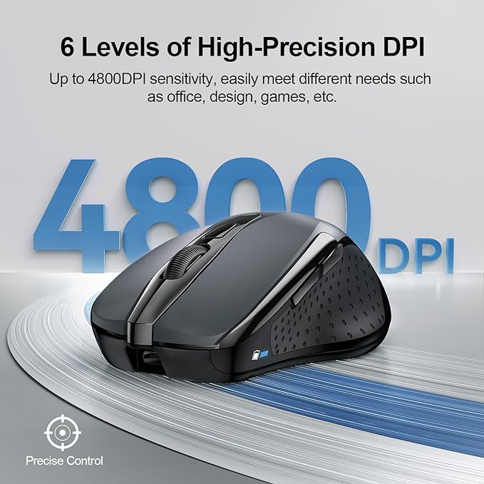 - 6 Adjustable Level: This computer mouse offers 6 adjustable DPI levels (4800/3200/2400/1600/1200/800), allowing you to easily customize DPI to suit your preferences. Whether you need precise control for detailed work or swift movement for browsing, this wireless mouse for laptop has you covered.