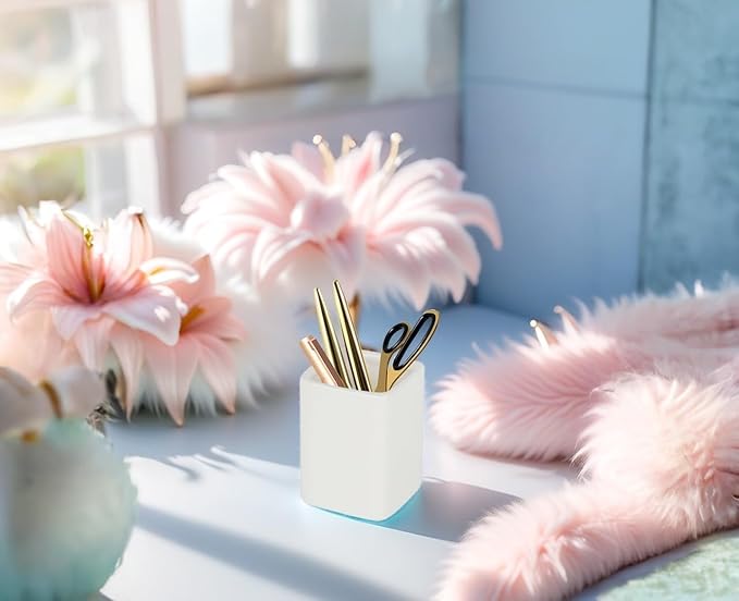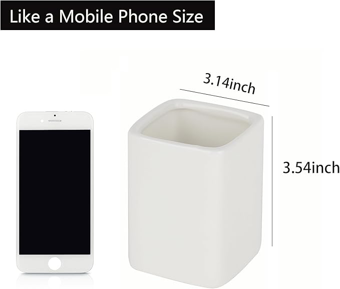 - 【Multipurpose】This square ceramics pencil cup is not only perfect for storing your makeup brushes, nail polishes, lipsticks and other small personal items but also great for storing your desktop stationery such as pen, pencil, marker, highlighters,ruler, eraser, paper clip, scissors, letter openers and and many other desk widgets.