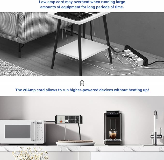 - With 12awg 5-15P extension cord, 6-20R T-Slot adapter for more appliance. Can plug it into a 15A or 20A outlets, if you are using it in a 15A system, do not exceed 1875W.