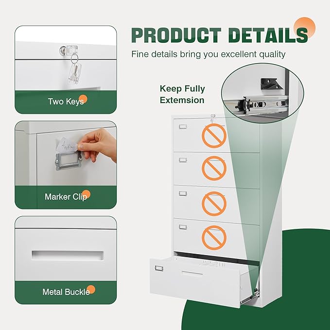 - 〖Durable Metal Material〗5 Drawer file cabinet is made of 0.8mm thick steel,whole is solid and does not deform, and it is stronger than wooden filing cabinets in terms of firmness, durability, moisture resistance, and fire protection.