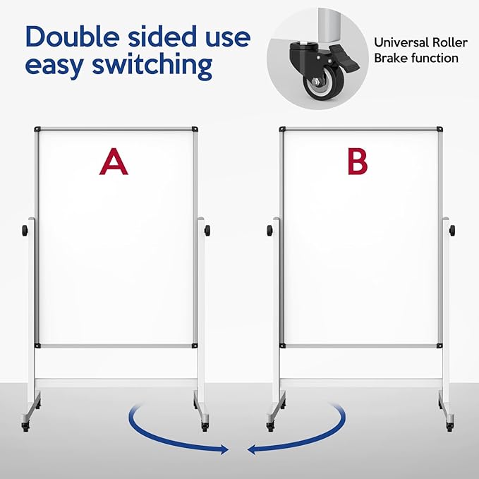 - Dual-sided Writing: Our whiteboard features two sides, each measuring 44x28 inches. With a simple rotation of the stand, you can seamlessly switch between sides, maximizing your writing space.