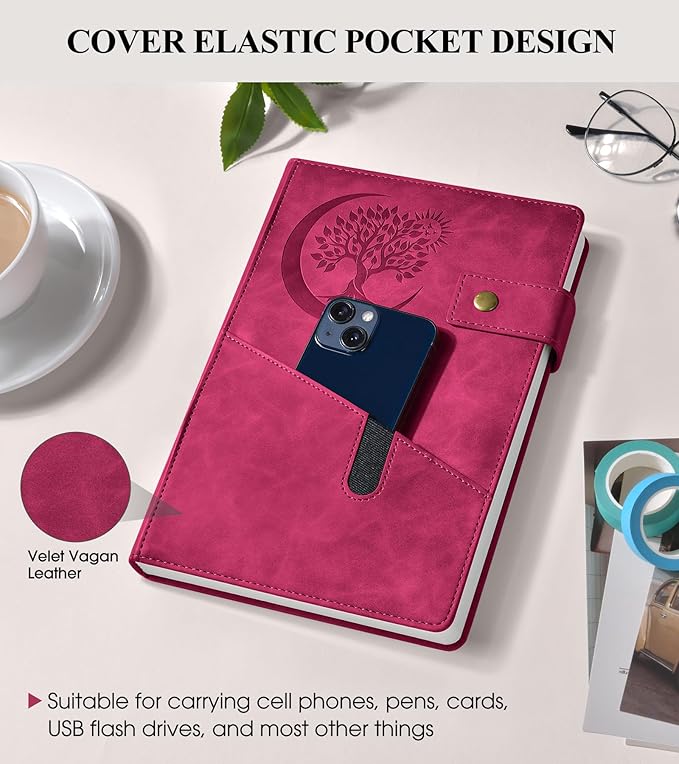 - 【CONVENIENT FEATURES FOR ORGANIZATION】:The leather journal includes 3 ribbon bookmarks, allowing you to easily mark important pages or sections. The 180° lay-flat design ensures that the notebook lies flat on any surface, making it comfortable to write in for extended periods. The metal snap closure design keeps the notebook securely closed, protecting your notes from damage.These features make the notebook a versatile tool for various settings, from work and school to personal use.