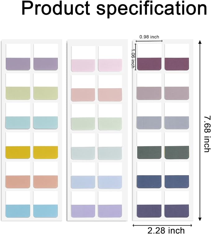 - Colorful Book Tabs:Colorful sticky page note tabs, use sticky tabs to mark and highlight the important information, different planner tabs are eye-catching for you easy to find.Save your time, improve your work and study efficiency.
